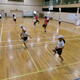 交流会が終わった後は、符津小の6年生の1組対2組で対戦をしました。途中担任の先生も参戦して大変盛り上がって楽しそうに試合をしていました。