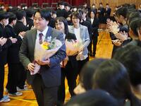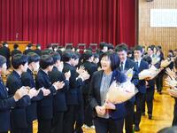 27日に離任式が行われました。転出する11名の教職員からの最後のメッセージを、一生懸命に心で受け止めている姿に感動しました。「これからの板津を任せてください。」という姿にあっぱれです。たくさんの卒業生も、お世話になった先生方とのお別れに集まってくれました。全体離任式の後は学年ごとにお別れの会も行われ、涙と笑顔がいっぱいの温かい時間となりました。新天地でも頑張ってくださいという願いと板津中で過ごした時間といただいたご縁に感謝ですという思いがあふれる1日となりました。