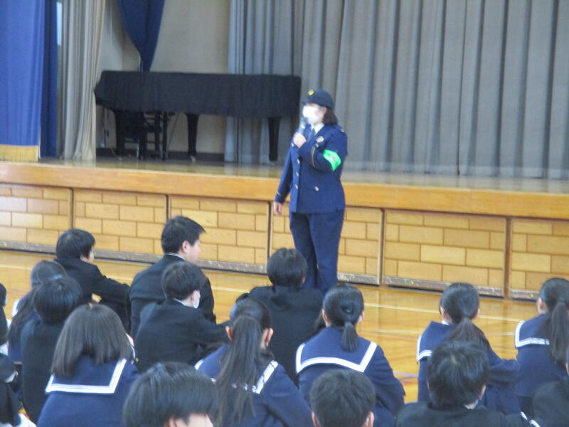 1月29日(木)、小松警察署生活安全課の方をお招きして、不審者対応避難訓練を行いました。不審者役はプロの警察の方にして頂くことになっていたので、先生方の事前研修での様子は真剣そのもの。さすまたの使い方や間合いの取り方、護身術など実践的な内容で研修を行いました。