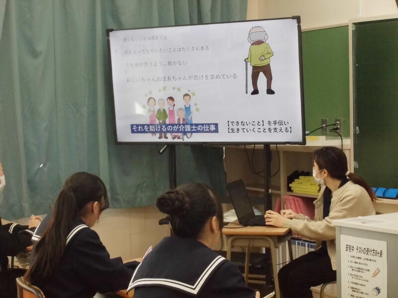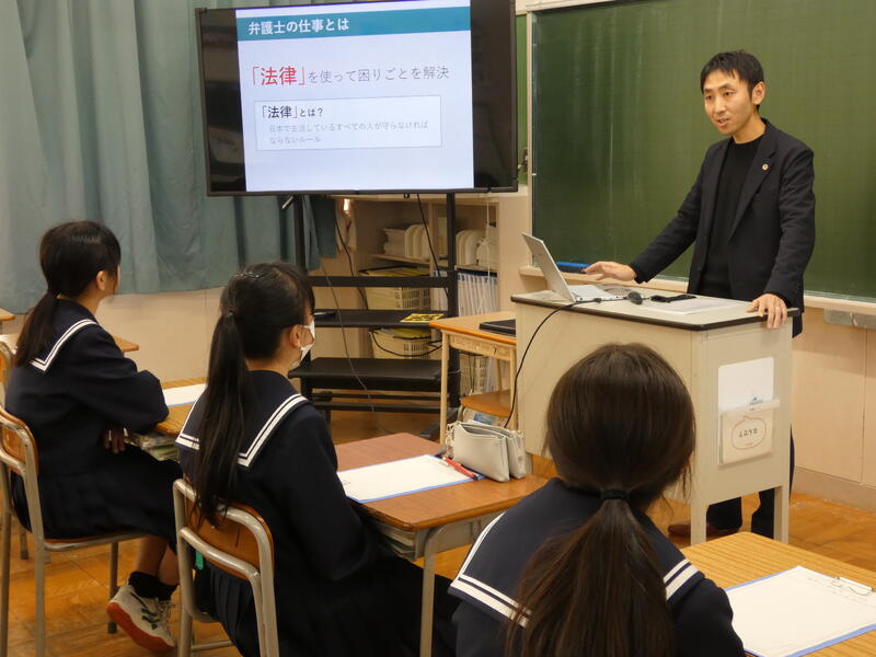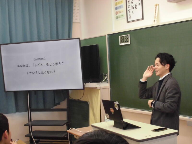 1月16日(金)に1年生のキャリア学習の一環として「職業人に聴く」を開催しました。小松ロータリークラブ様のご協力を頂き、5名のプロの方をお招きすることができました。あいにく急な欠席者が相次いだため、1クラスのみの参加でしたが、プロのお話をたっぷり聴くことができました。自分の知らなかった職業のことを詳しく聞いたり、働くうえで大切にしていることなどを聴いたりすることで、「働くこと」について今までとは違う視点で考えられたのではないかと思います。来年の職場体験に向けて具体的なイメージが持てたのではないでしょうか。 小松かがやき法律事務所様、松寿園様、コマニー(株)様、小松プラント(株)様、北陸エアーターミナルビル様、本当にありがとうございました。