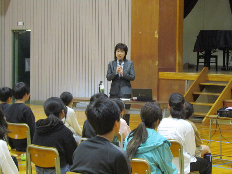 その後の講話では「いかのおすし」の確認、知らない人とは「距離」を置くことの大切さを学びました。