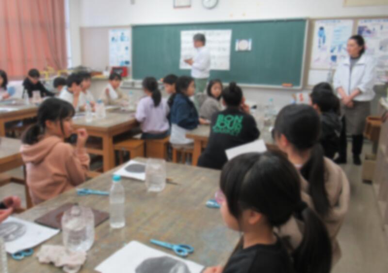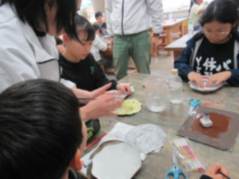 12月9日、粟津小学校に九谷焼の先生が2名来校され、九谷焼の絵付け体験をしました。事前準備していた下絵をもとに、慎重に線描きや彩色をしました。焼いたら色が変わるとのことで、その変化をイメージしながら色を選んで作業を進めました。焼き上がりが楽しみですね!