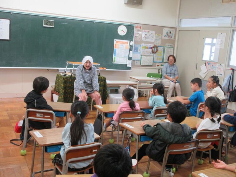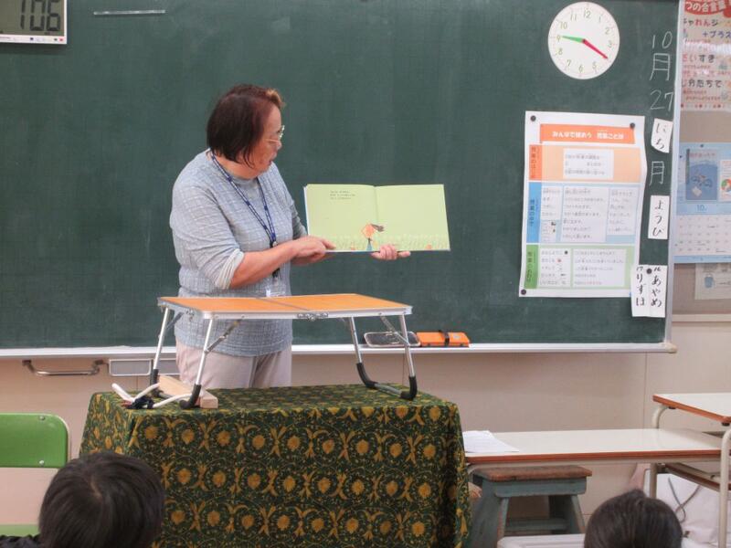 10月27日(月)市立図書館からお話宅配便として、1年生教室に読み聞かせや本の紹介に来てくださいました。