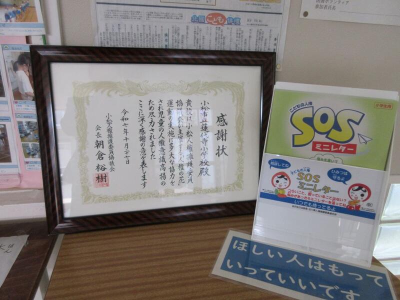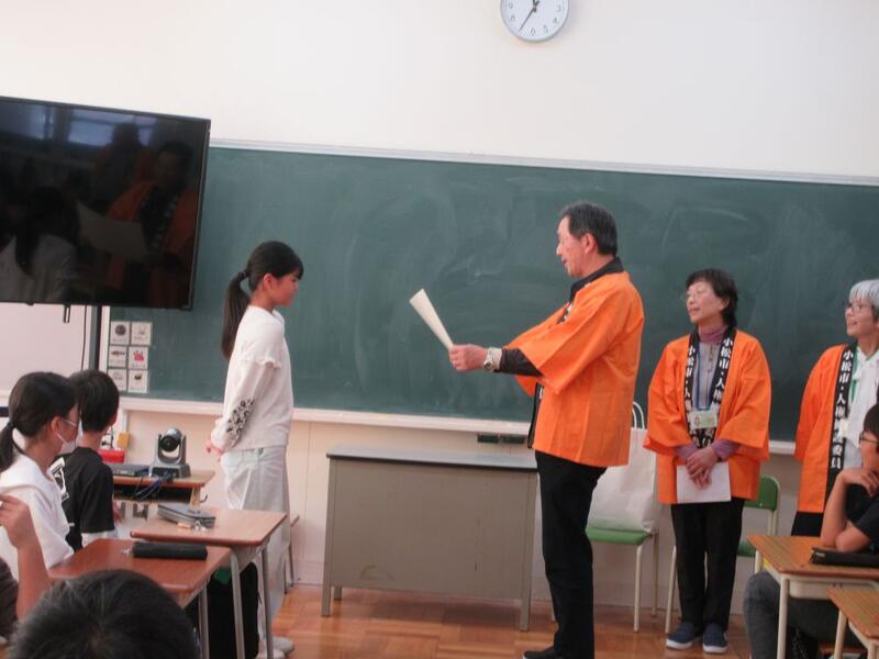 10月27日(月)春に人権擁護委員の方から頂いた花の苗を育てた感謝状を6年生が受け取りました。