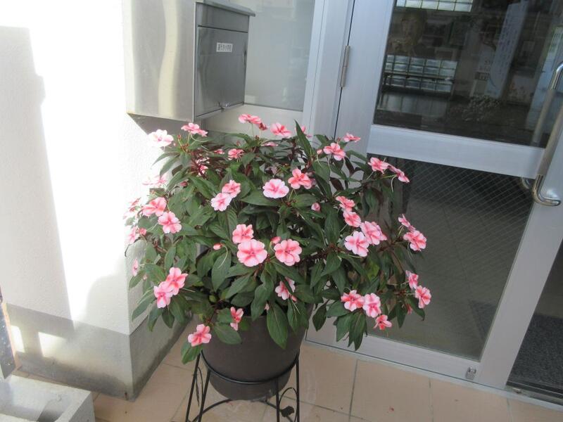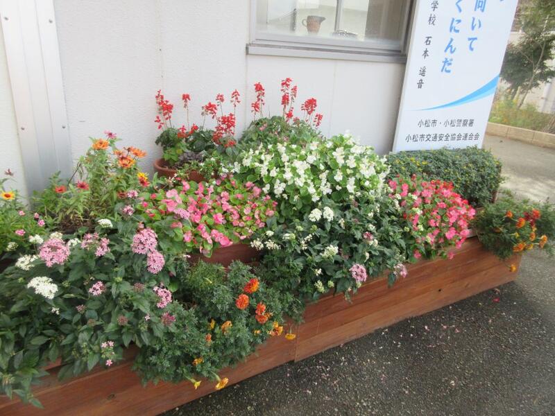 夏の暑さにも負けず今でも見事に学校の玄関を彩り心を癒してくれています。
