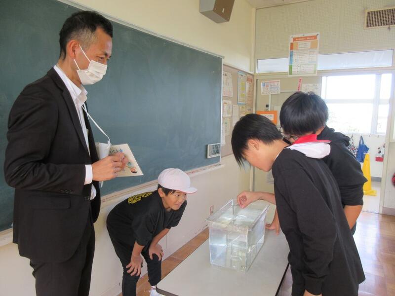 蓮代寺の水路でとってきた生き物で、クイズ大会!