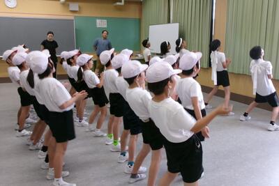 K’s体操クラブからお二人の指導者の方が来校され、3,4年生の児童に指導をしてくださいました。