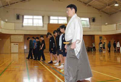文化庁が行っている「学校巡回公演」で,兵庫県の能楽団体、「瓦照苑(がしょうえん)」のワークショップと公演が行われました。