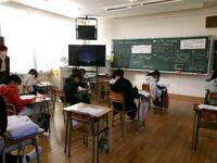 8月6日は全校登校日でした。1~4年生はオンラインで、5.6年生は登校して行いました。私からは、戦争と平和についてお話ししました。5,6年生はその後、高知県の宿毛市の児童と交流しました。お互いの地域や学校について紹介し合ったり、ゲームをしたり、クイズをしたりして交流を深めました。