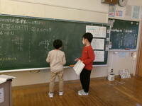 2年生は、算数の問題でどのように立式したらよいのか、真剣に話し合っていました。友達と話し合い、「あっそうか!」と言って、自分の席にもどって書き加えたり直している姿、いいなあと思いました。1年生は、ちょっと難しい練習問題を3人で力を合わせて解いていました。人とつながりながら課題を解決していくってこれからも絶対に必要ですね。