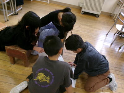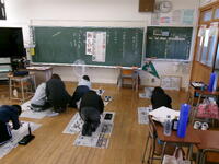 2年生は答えが繰り上がって百の位になる筆算の練習をしていました。しーんと真剣に取り組んでいました。3年生は巻き尺を使って、教室の横と縦の長さを測っていました。班で協力していました。6年生は飛鳥時代クイズをして、覚えておくべき知識の定着を図っていました。