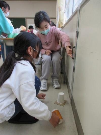 4年生の理科では、水の温まり方の実験をしていました。火やいろいろな実験器具を使う本格的な実験に、みんな真剣なまなざしで水の温まる様子を観察していました。