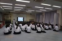 星の子助産院の坂谷先生より生命の誕生や心の分かち合い、トレーニングの大切さなどについてたくさん学びました。妊婦さんや子宮にいる赤ちゃんの疑似体験をしたり、実際の赤ちゃんと同じ重さの人形を抱いてみたりして、あっという間の2時間でした。みなさん、とても集中して取り組んでいました。