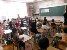 図書ボランティアさんによる読み聞かせが低学年でありました。読んでもらった本の内容にひかれて、本の世界に浸っていました。