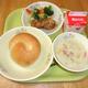 いつもの給食のメニューにハンバーグやポテト、デザートもついて豪華な給食になっています。パンは手でちぎりながら食べ、ナイフとフォークを使って食べました。おいしく食べることができました。