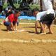 6年生がプール掃除をしました。たわしやデッキブラシを使って、プールの底や壁を磨きました。ホースの水がかかって「キャーキャー」言いながらも、楽しそうでした。