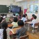 2年生の教室では、「歯の形と役割を考えよう」という課題で、歯の衛生指導を行っていました。鏡で歯の様子を見たり、養護教諭から歯磨きの仕方を教わったりしました。