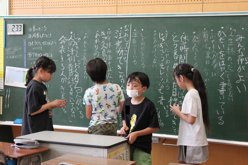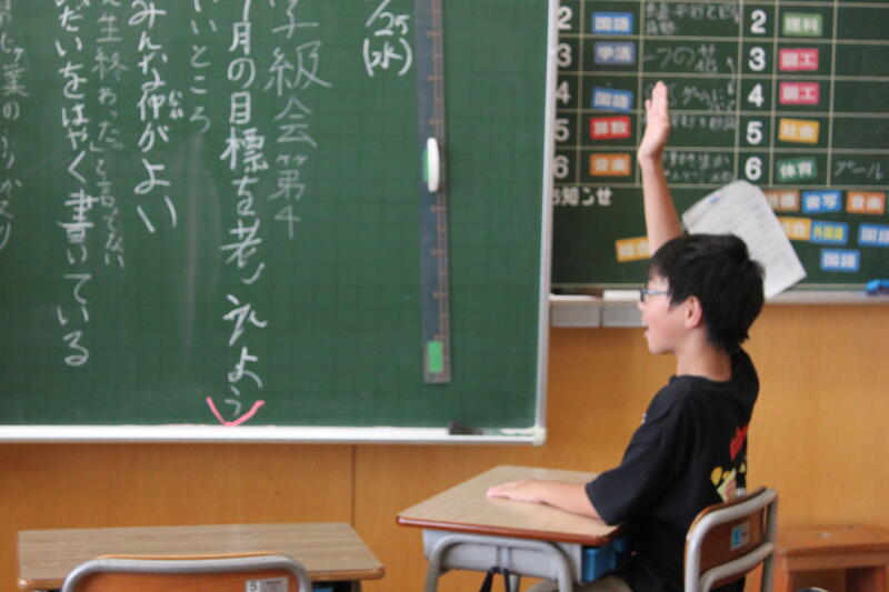 まずは、自分たちの学級のよいところを話し合っていました。そして、次は自分たちのクラスの直したいところを話し合っていました。自分たちでよいところも直したいところも出し合うことで、学級の現状を自覚でき、成長していくことができます。直したいところから、1ヵ月の学級の目標を決めて、みんなで取り組んでいます。