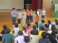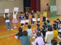 24日(金)に2年生が1年生を招待しての「なかよしの会」が開かれました。2年生が学校生活のことをしっかりと説明していました。勉強のこと(計算カード・漢字・鍵盤ハーモニカ)、先生のこと、1年生は興味津々で聞いていましたよ。