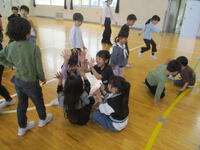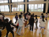 学校生活紹介のあとは、「猛獣狩りに行こうよ」ゲーム!1年生・2年生入り混じって、人数仲間集めを楽しんでいました。先輩2年生のかかわりの中で、1年生がさらに安心感を持って学校生活を送れることを願っています。