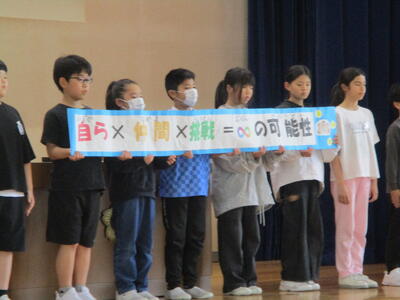 児童会目標は「自ら✖仲間✖挑戦=∞の可能性」です。この目標にも今年度大切にしている「主体性」が感じられてうれしい限りです。