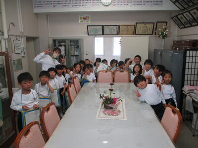 そして、学校の校舎に慣れるために、学校探検も行っています。今日は1年2組さんが理科室に6年生の授業(実験!)を見学に来ていました。こうやって学校の仲間にも校舎そのものにもどんどん慣れていければと思います。