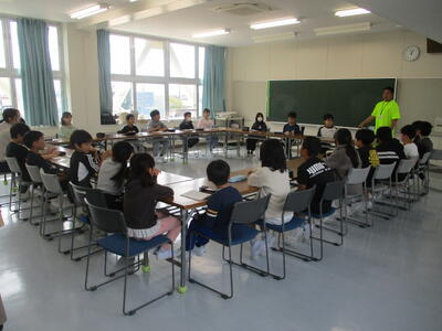 お昼休みには、児童企画委員と各委員会委員長、そして3年生以上の会長・副会長で構成する「さざなみ議会」の第1回が開かれました。