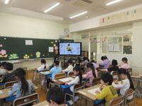 学校生活4日目の1年生。国語の時間、どちらのクラスもえんぴつのおけいこをしていました。正しい姿勢と持ち方を確認して、線の練習。どの子も筆箱を出すのもうれしくて・・・意欲満々。はりきって(でも、慎重に)がんばっていました。