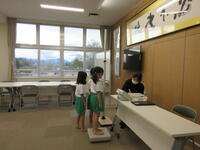 次の日には身体計測。保健の先生の話をしっかり聞いて、ちょっぴり緊張しながら静かに行っていました。