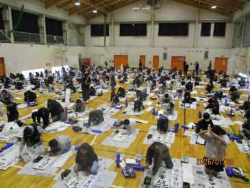 令和8年が始まりました。始業式の日に書初めの会を行いました。3~6年は体育館で一堂に会し、みんな真剣な表情で取り組んでいました。