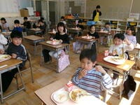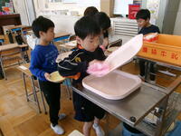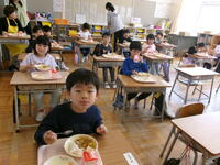 今日から1年生も給食が始まりました。こども園でやっていた経験もあり、給食当番はとても上手に配膳できました。メニューはカレーライスとフルーツヨーグルト。「おいしい!」「作ってくれた人ありがとう!」の声が聞こえ、おかわりする子もいました。毎日しっかり食べて、元気に学校生活を送ってほしいです。