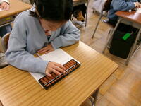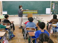 そろばんの先生に来ていただき、そろばんでの数の表し方や簡単な計算の仕方を教えてもらいました。一珠を入れる時は親指、五珠を入れる時や引く時は人差し指を使うこと等が分かりました。みんな真剣に取り組んでいました。