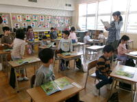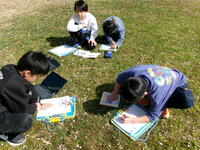 本格的な時間割開始は来週月曜からですが、学習も始まっています。1年生は国語の教科書を開き、絵の中から見つけたものを発表していました。4年生は理科で、一年を通して観察する生き物や植物を探していました。今きれいに咲いている桜を選んでいる子が多かったです。モンシロチョウやカエルを見つけた子もいました。春ですね。