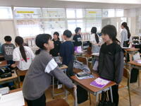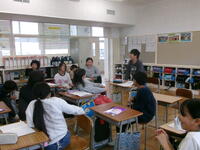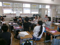 教材文を通して「あいさつ」について考えていました。発表している子に身体を向けて聴き、聴いた後には自然と拍手がありました。また、友だちと意見を交わす場面でも自分の意見を伝え、友だちの意見もしっかり聴いている姿がありました。授業の最後には、あいさつって「ハッピーなもの」「明るくなるもの」といった意見が出され、温かな優しい気持ちになった学習でした。