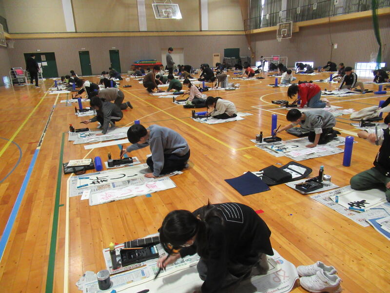 始業式の後は、書初めです。3~6年生は体育館で一堂に会して取り組みました。2学期からの練習の成果を発揮しようと集中している様子が見られ、大変良い雰囲気でした。