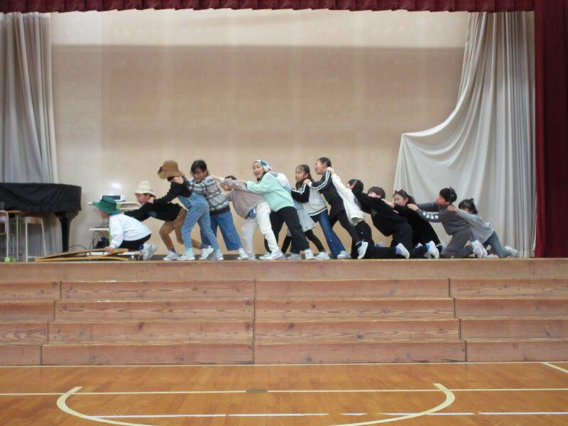 1・2年生の「大きなかぶ」は6年生の中学校への大きな不安をみんなで力を合わせて抜くというストーリー