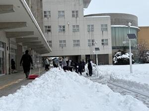 月曜日の朝、たくさんの生徒が除雪に参加してくれました。50人以上はいたと思います。あっという間に生徒玄関前がきれいになりました。生徒たちのパワーを感じました。今週も明日ごろから雪予報です。お互い助け合いながら、冬を乗り切りましょう。