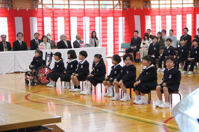 4月6日(月)、新入生9名を迎えての入学式が行われました。大きな声で返事をし、とても立派な姿でした。2年生から6年生も学年が上がり、頑張っていこうという気持ちが感じられました。全校84名で新たな1年がスタートです。