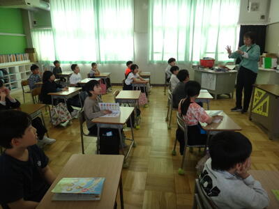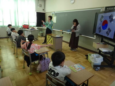 4月14日(火)、3年生にとっては初めての「外国語活動」が始まりました。この日は、世界の国々の国旗から、各国のあいさつを学びました。担任の先生、イングリッシュサポーターの先生と一緒に発音したり、各国の知っていることを話したりしました。国旗を見ただけで、すぐにどこの国かを答えていて、「よく知っているなあ」と感心しました。これから外国の言葉や文化について、楽しみながら学んでほしいです。