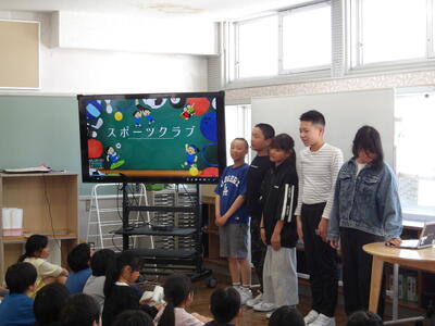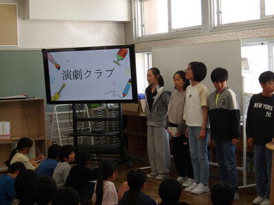 今年度6年生によって6つのクラブが誕生します。今日の5限目に4・5年生を対象に「クラブアピール会」が行われました。