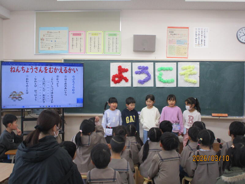 3.10(火) 来年度入学する年長さんを学校に招いて、1年生が年長さん