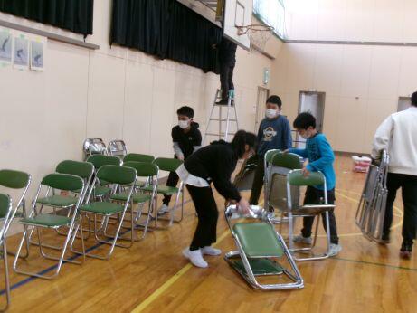 卒業式の前日、5年生が会場などの準備をしてくれました。インフルエンザでの欠席もいる中、自分たちで一生懸命に仕事をみつけ、進んで働く姿に本当に感心しました。立派な6年生への階段を上っていますね。心を込めて卒業をお祝いしましょう。