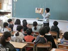 図書ボランティアさんによる読み聞かせが低学年でありました。読んでもらった本の内容にひかれて、本の世界に浸っていました。