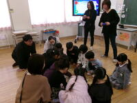 今日は4月に木場小学校に入学する年長さんをむかえて、1年生が「1年生をやさしくむかえる会」を行いました。木場小学校で1年近く頑張ってきた1年生、今日は1人お休みで2人でしたが、司会やできるようになったこと等、立派に話したり、教えてあげたりしていました。10人の年長さんも初めは緊張していた様子でしたが、一緒にかるたをしたりコマをしたりして次第に打ち解けてきたようです。