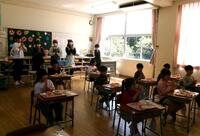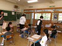 今日から1年生の給食の始まりです。6年生が配膳にきてくれました。その手際のよいこと!さすがです。そしてそれを待つ1年生も座って静かに待っていました。メニューは、カレーライス、フルーツヨーグルト、牛乳でした。おいしそうに頬張っていました。
