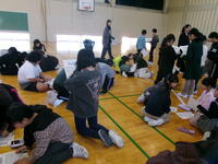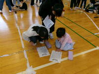 人権集会の取組の1つ「名前BINGO」の名前を入れる会が昼休みに体育館でありました。BINGOの中にある、「お正月におせちを食べる人」とか、「家にこたつがある人」を探して、いろいろな人に話しかけ、「食べるよ!」「こたつあるよ!」という人をみつけたら、その人の名前を紙に書き込みます。運営委員会が進行し、先生たちの全体への声かけが何も聞こえない会でした。小さな学校ですが、初めて話した人もいたようです。児童も先生もみんな笑顔の会でした。今度はそれを使ってBINGOです!