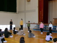 今日は、修了式を行いました。漢字や計算の表彰や、図書室からの表彰もありました。1年間で頑張ったことの発表では、学級の代表者が、漢字や計算、挨拶や外国語など自分が頑張ったこと、来年度頑張ることを大黄な声で堂々と述べていました。保護者の皆様、1年間本当にありがとうございました。今後ともよろしくお願いします。