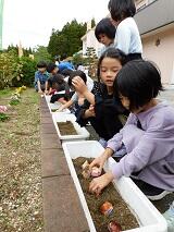 2回目は、みんなでチューリップの球根を植えました。春になって卒業や進級を迎えるころ、みんなの植えたチューリップの花が色とりどりに咲いていることでしょう。