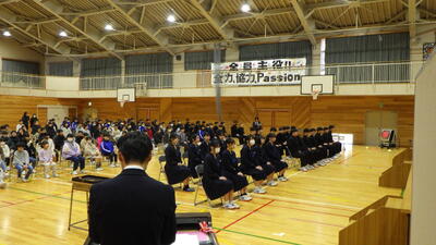 明日の卒業式を控え、公立入試を終えた9年生とともに総練習を行いました。凛とした雰囲気で、いい卒業式になりそうな気がします。