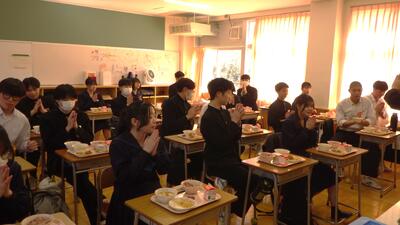 9年生は最後の給食。おかわりじゃんけんも最後の思い出となりました。